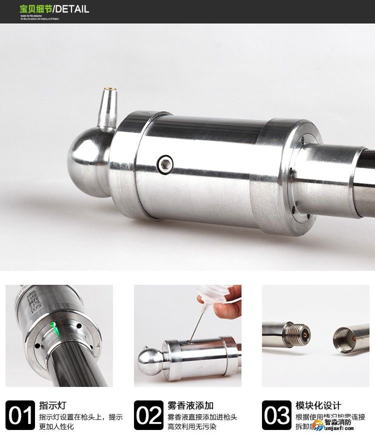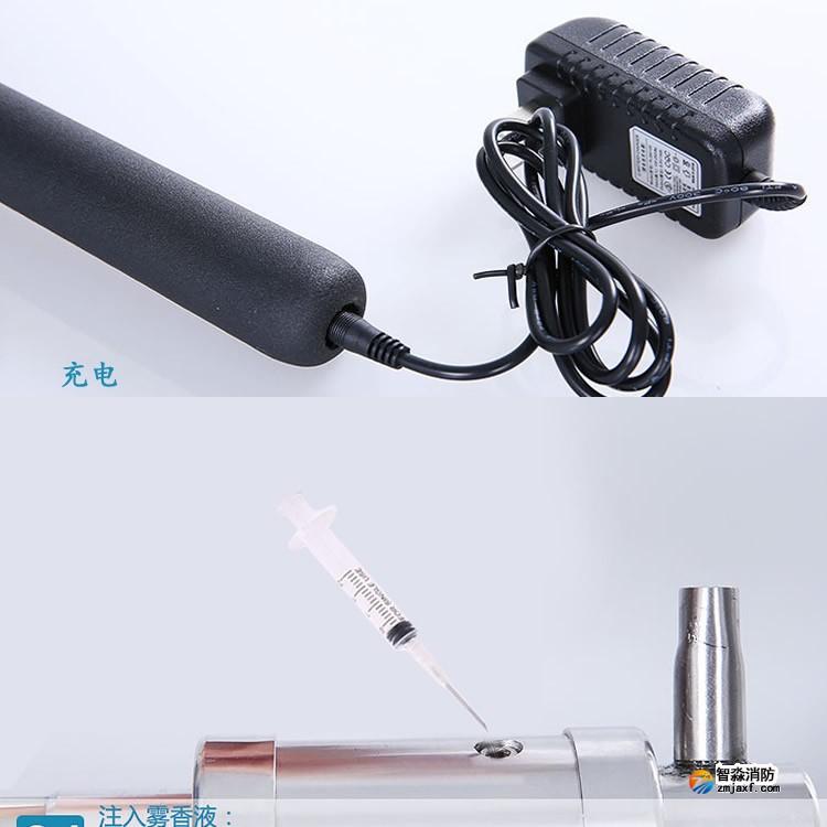 槍頭、連接桿、電池桿、充電器、霧香液、注入器、簡易試驗(yàn)筆、手報(bào)吸盤。