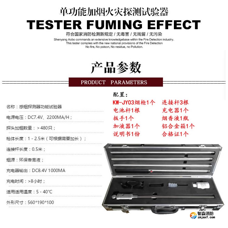 ZM-Y感煙探測器功能試驗(yàn)器是4+2全功能火災(zāi)探測器試驗(yàn)器的子產(chǎn)品,利用物理學(xué)和化學(xué)原理控制和轉(zhuǎn)換技術(shù),采用環(huán)保型霧香液通過電子能量轉(zhuǎn)換,將液體釋放哦顆粒煙霧,取代并淘汰了傳統(tǒng)的棒香發(fā)煙方式,發(fā)出的煙霧無明火、無煙灰、無煙油,對探頭無二次污染。以其結(jié)構(gòu)緊湊,外形精美,攜帶方便,組裝簡單,操作靈活,槍體輕便,性價(jià)比高等受到廣大用戶的青睞。全結(jié)構(gòu)為不銹鋼設(shè)計(jì),鋁合金箱包裝,可對感煙類(各種型號的離子、光電及復(fù)合類煙感探測器)火災(zāi)探測器進(jìn)行維護(hù)、檢測、調(diào)試、驗(yàn)收、靈敏度試驗(yàn)。是消防檢測、消防工程及使用火災(zāi)報(bào)警系統(tǒng)的單位輔助工具。